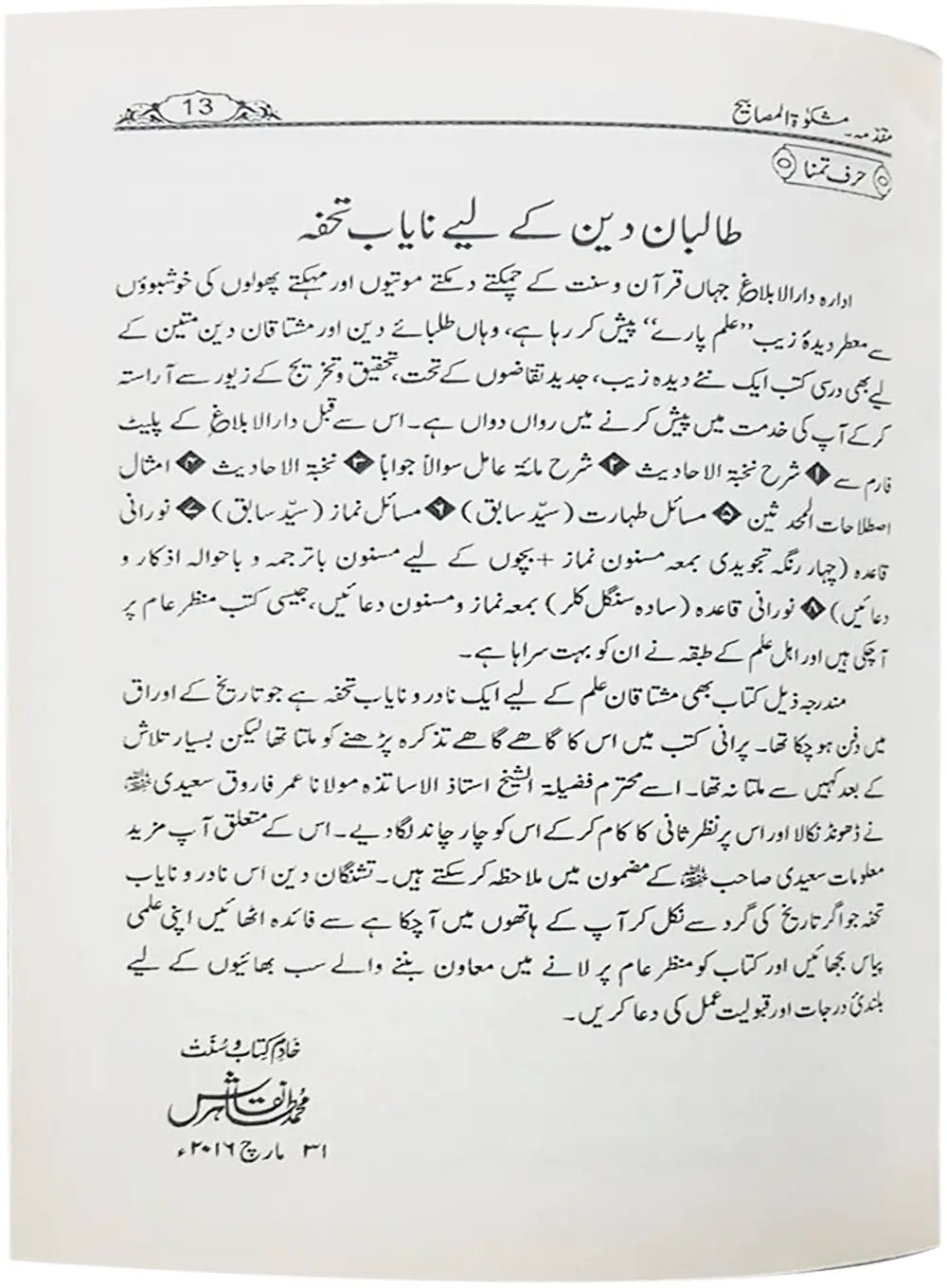 Urdu Book Title | مقدمہ مشکوۃ المصابیح |