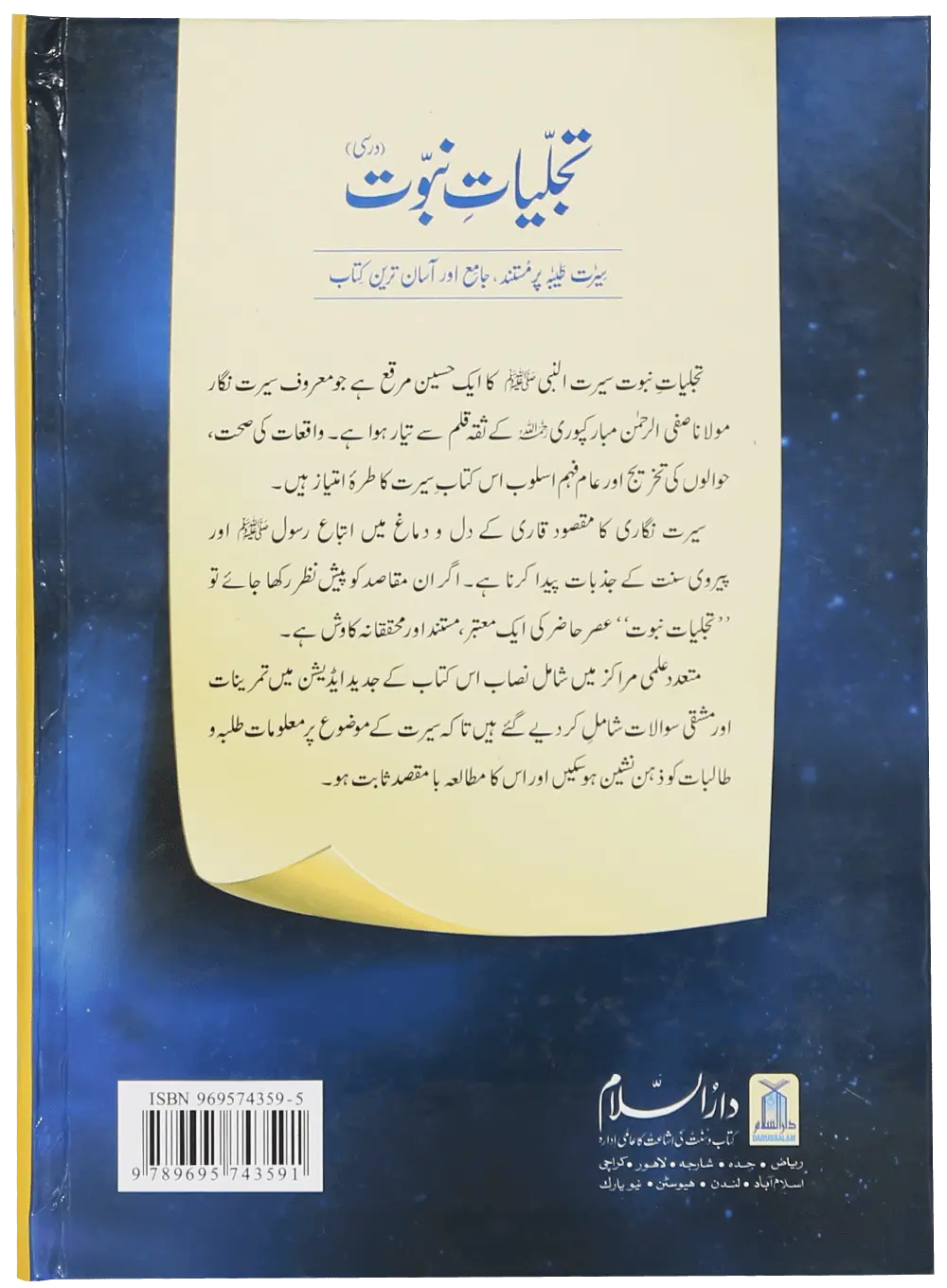 The Tajaliyat-e-Nabuwat (SAW) – Darsi serves as a structured text for dars (lessons) and lectures, making it highly beneficial for Islamic scholars, students, and general readers. Each section provides practical insights into the Seerah (biography) of the Prophet (SAW), his teachings of mercy, justice, and spirituality, as well as the role of Prophethood in shaping the moral and social foundations of the Muslim community.